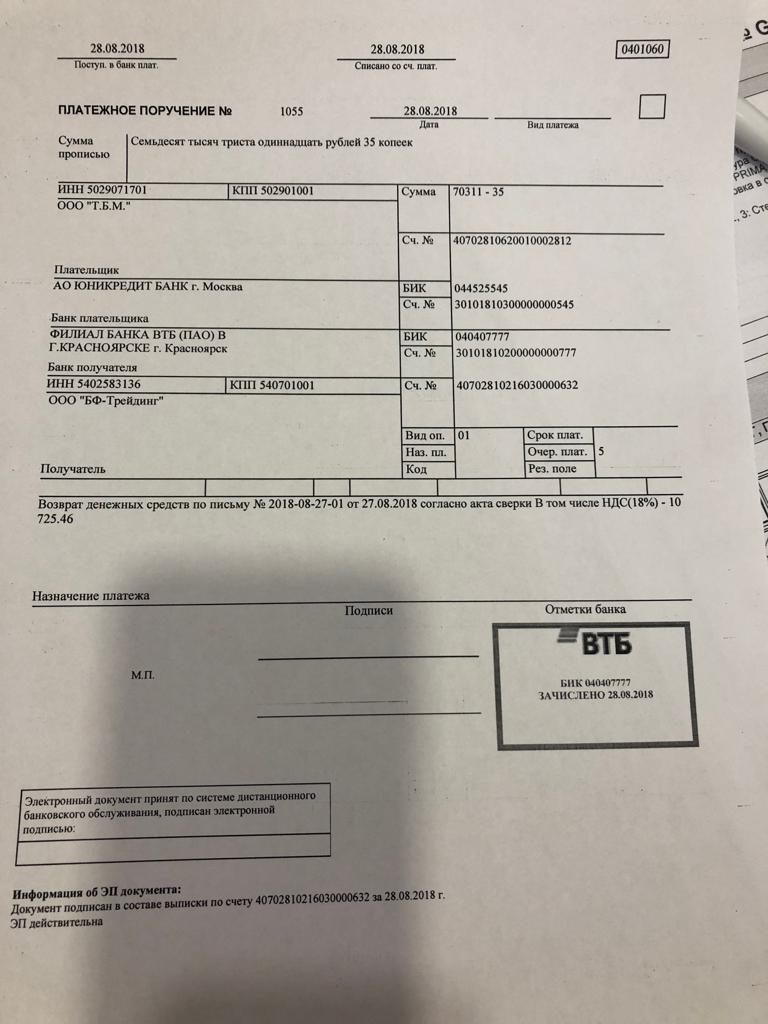 | | |  | | | | | | |  | | | Участников | 38134 | | Всего | 51160 лотов | | На сумму | 267 800 966 626 руб. | | Проведено | 48286 лотов | | На сумму | 248 910 377 004 руб. | | | | | |  | |  | | | ООО БФ-Трейдинг (идентификационный номер: 6506-ОТПП) | Организатор торгов | | Наименование | Сидоров Игорь Владимирович | | Адрес электронной почты | sivnsk64@mail.ru | | Номер контактного телефона | 8(383)224-99-92 | | Арбитражный управляющий | | Фамилия, имя, отчество | Сидоров Игорь Владимирович | | Регистрационный номер ФРС | 4556 | | Название саморегулируемой организации арбитражных управляющих | ААУ "Арсенал" - Ассоциация арбитражных управляющих "Арсенал" | | Информация для интеграции с ЕФРСБ | | Идентификационный номер торгов на ЕФРСБ | 3175971 | | Сведения о должнике | | Полное наименование | Общество с ограниченной ответственностью «БФ-Трейдинг» | | Краткое наименование | ООО «БФ-Трейдинг» | | ОГРН | 1145476142900 | | ИНН | 5402583136 | | Сведения о банкротстве | | Наименование арбитражного суда | Арбитражный суд Новосибирской области | | Номер дела о банкротстве | А45-24807/2017 | | Основание для проведения торгов | Решение арбитражного суда Новосибирской области от 05.04.2018г. (резолютивная часть объявлена 29.03.2018г.) по делу №А45-24807/2017 | | Информация о торгах | | Форма проведения торгов и подачи предложений | Открытые торги посредством публичного предложения (Банкротство) | | Начало предоставления заявок на участие | 11.12.2018 00:00 | | Окончание предоставления заявок на участие | 30.04.2019 00:00 | | Дата и время подведения результатов торгов | 30.04.2019 18:00 | | Место подведения результатов торгов | электронная площадка «Аукционы Сибири» (адрес в сети Интернет http://www.ausib.ru) | | Порядок оформления участия в торгах, перечень представляемых участниками торгов документов и требования к их оформлению | Заявки на участие в торгах, предложения о цене имущества и документы оформляются в форме электронных документов, подписанных ЭП Заявителя, и подаются оператору торговой площадки посредством системы электронного документооборота на сайте в сети интернет www.ausib.ru начиная с 11.12.2018г. в 00:00 (время указано московское). К заявкам на участие в торгах должны прилагаться документы, предусмотренные ст. 110, ст. 139 ФЗ «О несостоятельности (банкротстве)», в предусмотренных законодательством случаях - одобрение (согласование) уполномоченного органа (лица) сделок Заявителя на участие в торгах и приобретение Заявителем продаваемого имущества. | | Сроки и порядок внесения и возврата задатка, реквизиты счетов, на которые вносится задаток | Размер задатка - 10 % от начальной цены продажи лота, действующей на соответствующем этапе проведения торгов. Задаток подлежит внесению до подачи заявки на участие в торгах на специальный счет должника – ООО «БФ-Трейдинг» №40702810816037000006 в ФИЛИАЛ БАНКА ВТБ (ПАО) в Г.КРАСНОЯРСКЕ, к/с 30101810200000000777, БИК 040407777. Основание для перечисления задатка – договор о задатке, заключенный с Организатором торгов. Поступившие от третьих лиц, а так же в отсутствие заключенного договора о задатке (на определенных Организатором торгов условиях) денежные средства возвращаются. Договор о задатке, подписанный ЭП Организатора торгов, размещен на сайте «Аукционы Сибири» (ausib.ru). Заявитель представляет Организатору торгов подписанный ЭП заявителя (либо составленный на бумажном носителе и подписанный собственноручно) договор о задатке и направляет задаток на счет, указанный в настоящем сообщении. Заявит